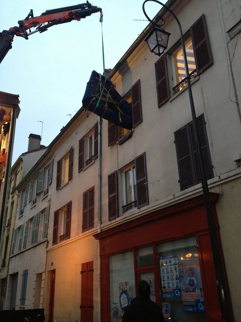 Transport de piano avec Grue dans les rues parisiennes